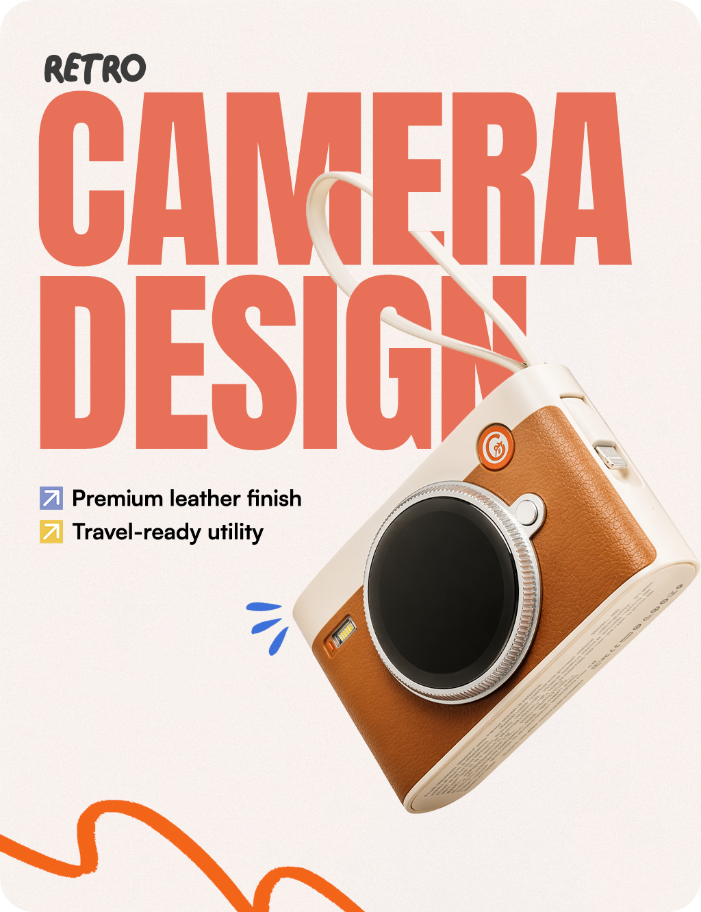 | Body Design | Retro-camera aesthetic, premium leather texture |